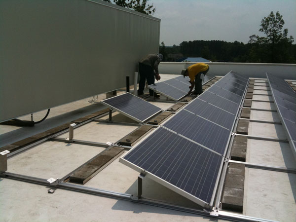 The solar project consisted of installing a roof mounted 10 KW solar panel system that would not disrupt the rubber membrane roof or compromise the roof warranty. A ballasted solar array system installed on racking, and rubber pads with no roof penetrations was utilized. RB Engineering structurally evaluated the existing building after conducting a site visit. Our analysis of the existing framing members ensured that the building could safely support the additional loading.